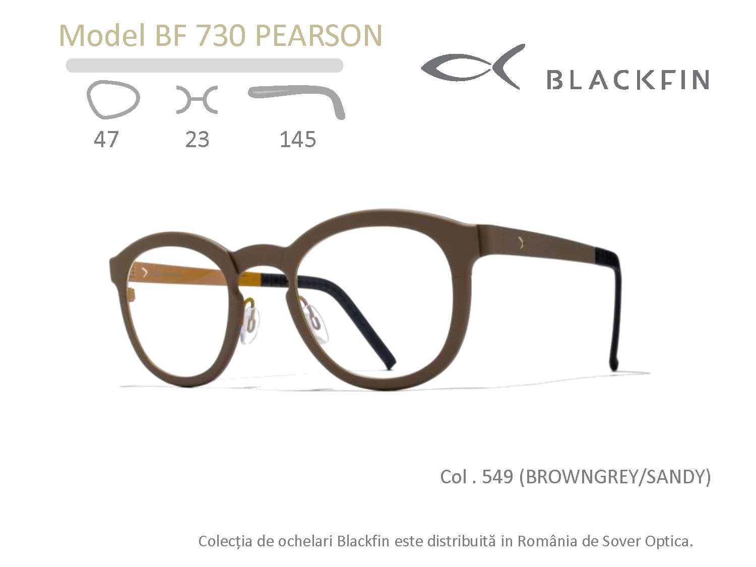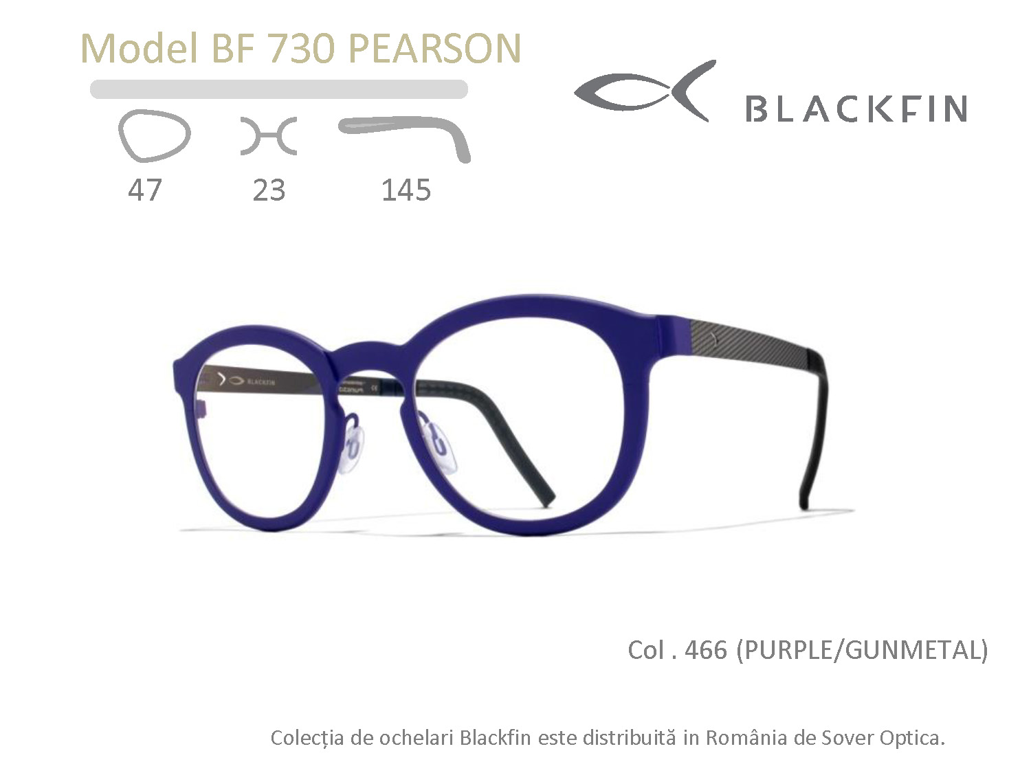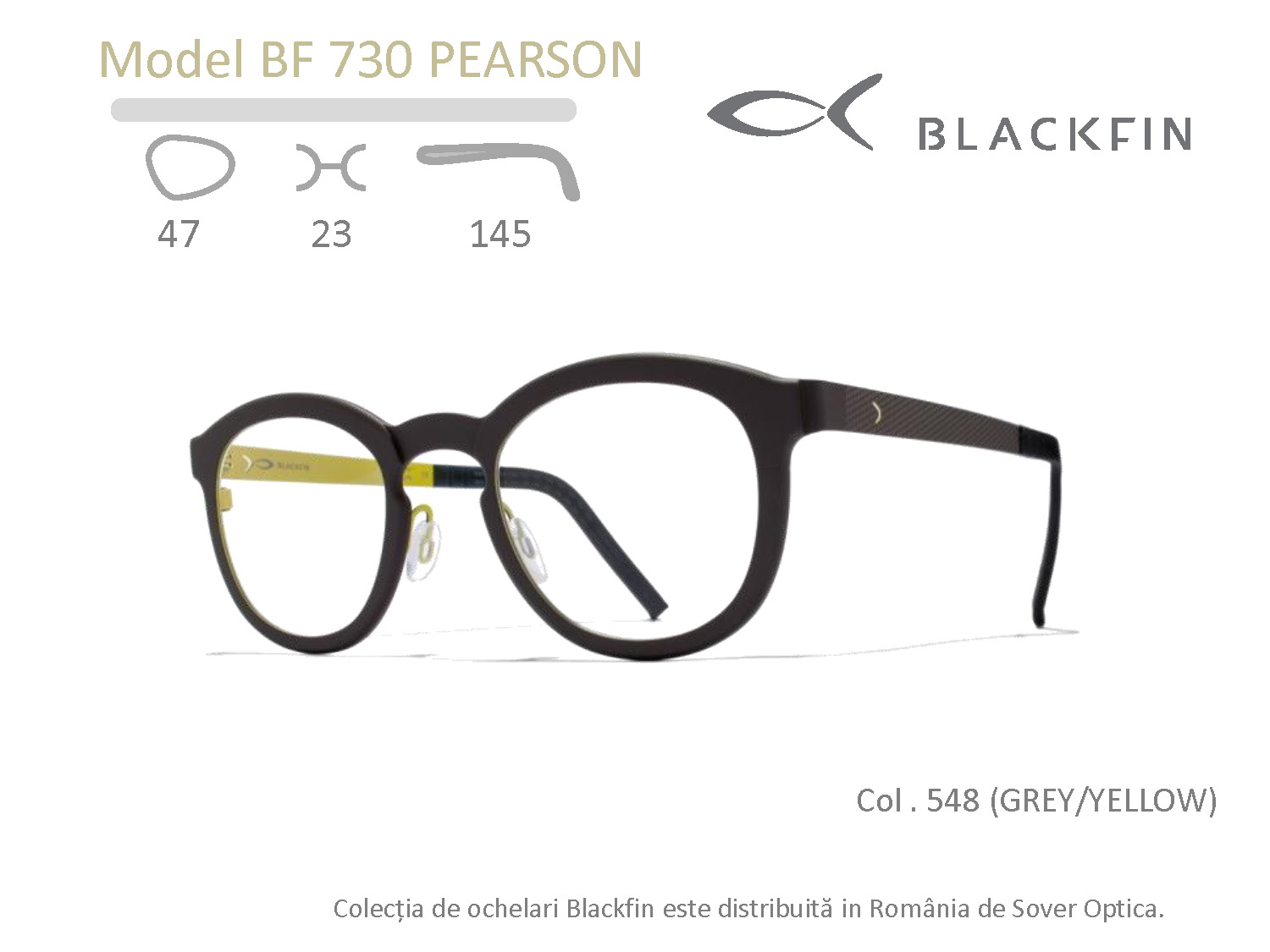 Cele cinci versiuni cromatice a ramelor de ochelari Blackfin BF730 Pearson se disting prin expresivitate formală, perfecțiunea detaliilor și exuberanța cromatică, confirmând energia și vitalitatea specifice Blackfin.