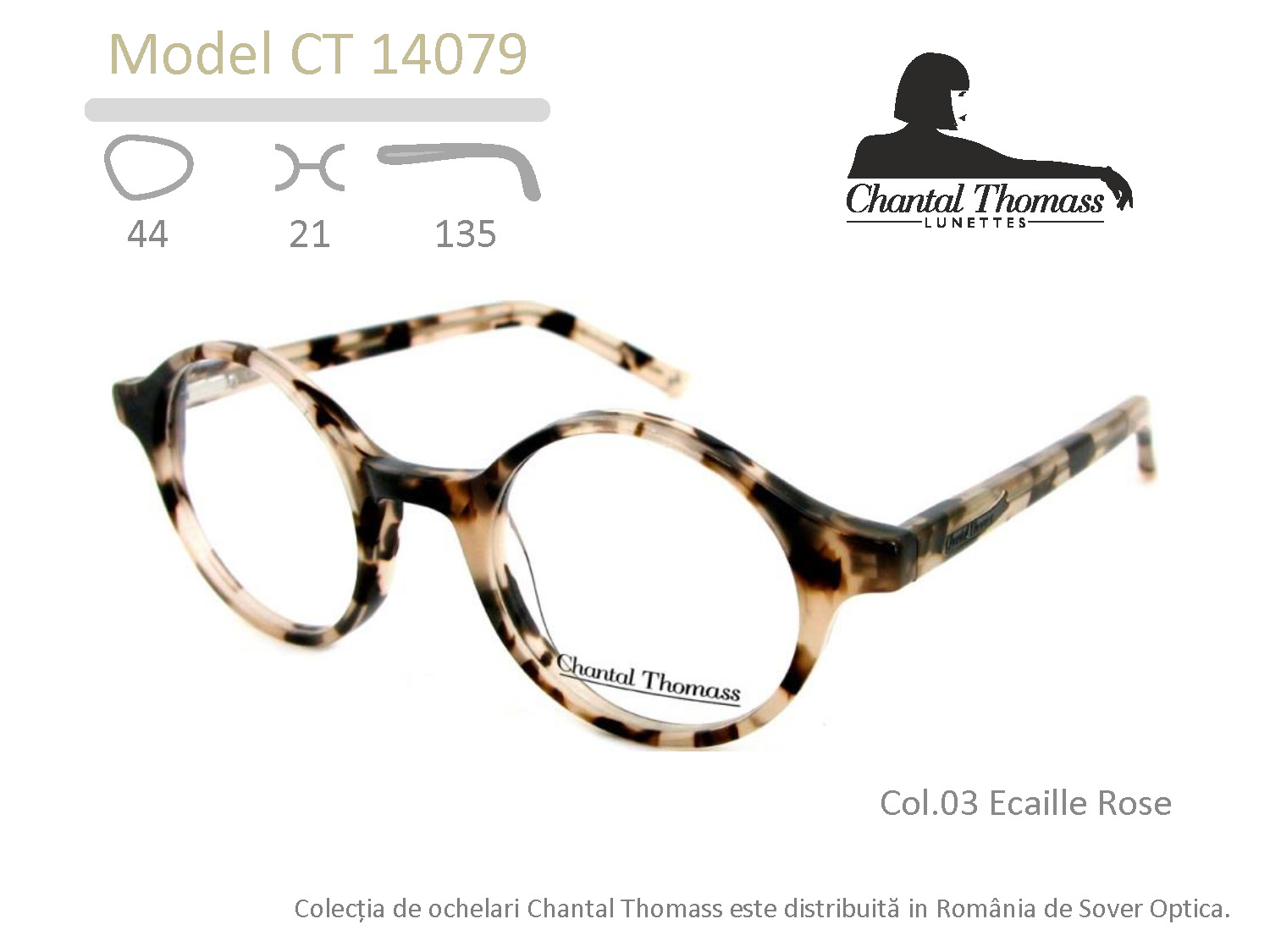 Montura Chantal Thomass CT14079_C1 are un aer deopotrivă mitologic și modern, silueta round fiind mai actuală ca niciodată. Dacă privim generic, observăm că, de vreo trei sezoane, tipologia round a cucerit tot mai mult în popularitate. Azi forma anourilor decupate circular s-a impus deja în toate colecțiile, fie de vedere, fie de soare, distingându-se nu doar prin simplitate formală și eficiență optică, ci și prin versatilitate și expresivitate. Round reprezintă o alegere logică în situații cotidiene, potrivită pentru ambele genuri de purtători, conotația monturilor cu linii esențiale depășind granițele temporale sau geografice. Însă, dacă privim o colecție de ochelari dedicată femeilor a căror punct forte este senzualitatea, atunci round începe să joace un rol diferit. Inevitabila asociere cu “personaje tocilare” se transformă. În viziunea Chantal Thomass -„I only design for women’s pleasure”- ochelarii round de culoare neagră devin un accesoriu fatal pe fața unor personaje chic, ce fac cu ochiul impertinenței. În acest scenariu, ochelarii se fetișizează, devenind obiect al dorinței.