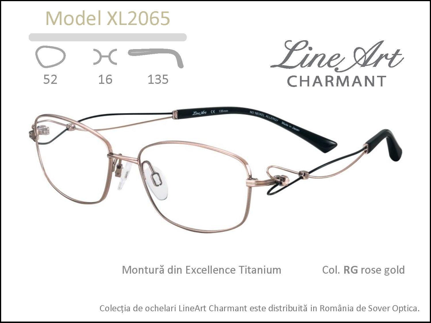 Colecția LineArt Charmant este recunoscută pentru armonia desăvârșită dintre formă și funcție. Aceste două clasice ingrediente sunt recompuse într-un duet punctat cu accente strălucitoare, montura XL 2065 fiind rodul designului preocupat de o perfectă simbioză între materiale cu proprietăți unice, expresie plastică și beneficii incomparabile.