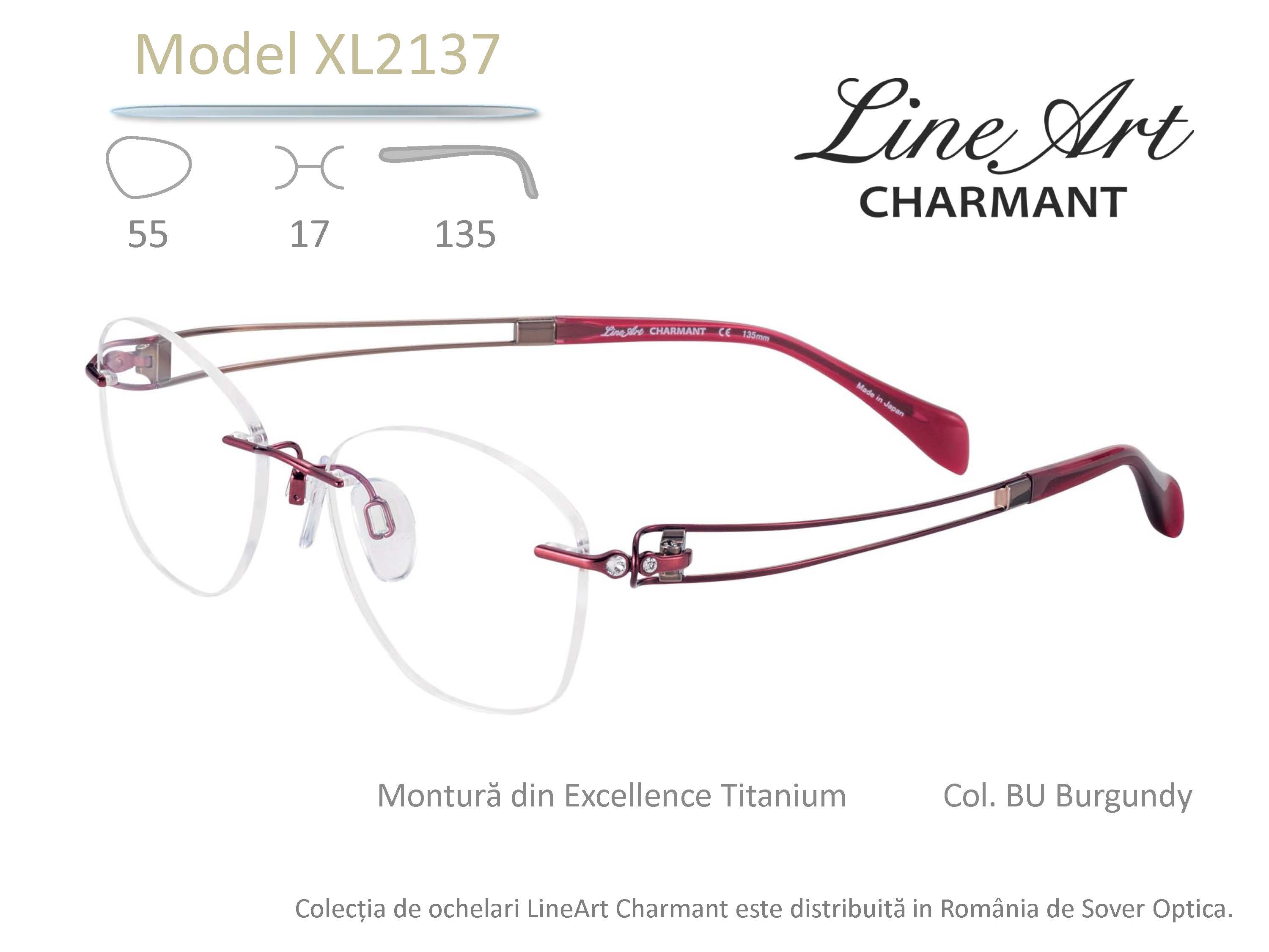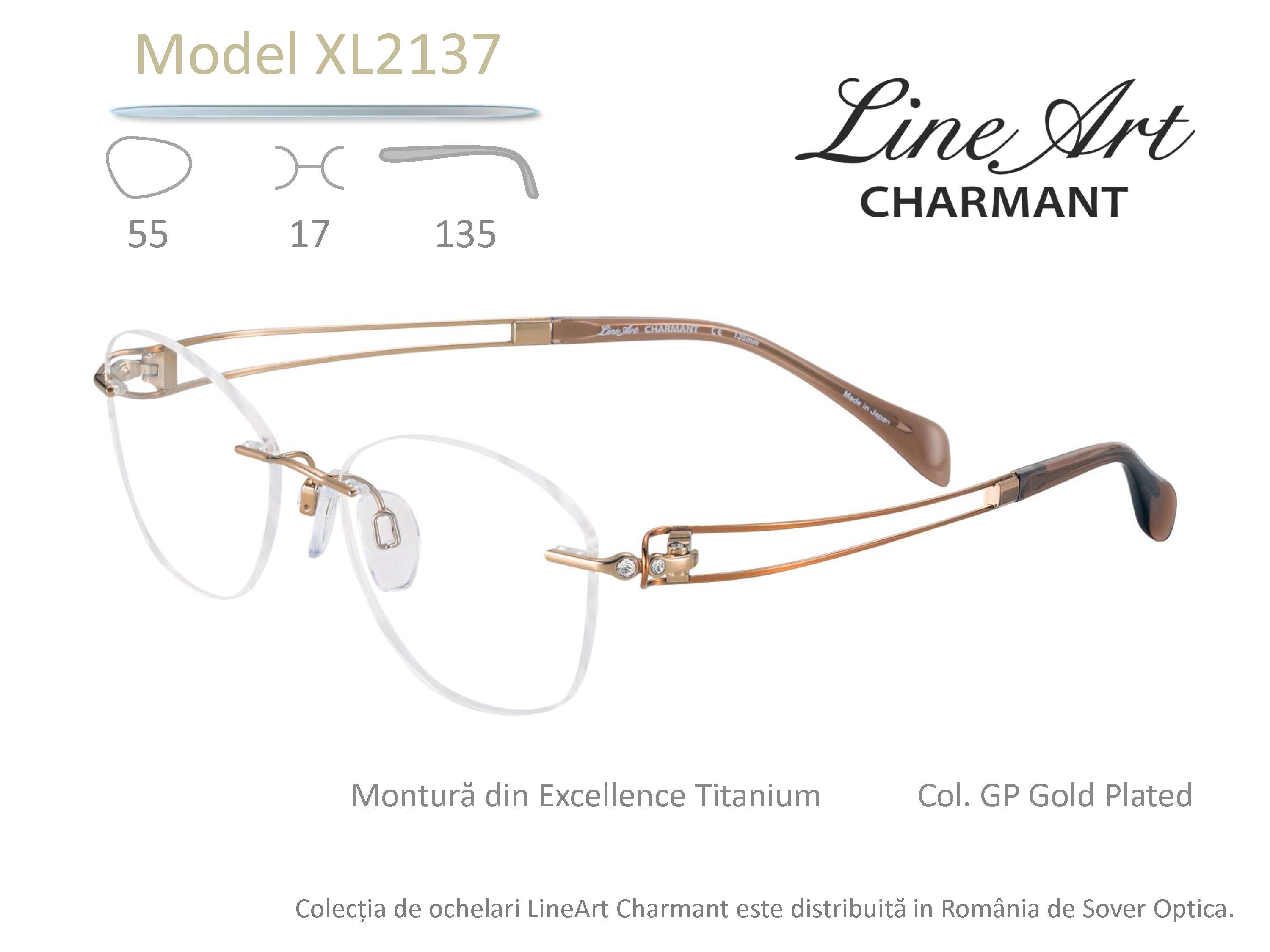 Modelul LineArt Charmant XL2137 aparține seriei Vivace, distingându-se prin silueta extrem de rafinată și delicată. Inexistența anourilor permite insertul oricăror corecții optice, montura având adresabilitate în segmentul femeilor cu vârste cuprinse între 30 și 55 de ani. Pentru aceste purtătoare, percepția vizuală optimă în condiții de confort anatomic absolut nu exclude expresivitatea și aerul contemporan. Compoziția câștigă în prețiozitate datorită celor patru cristale Swarovski, dispuse două câte două în zona articulațiilor. Pentru calitățile funcționale și autenticitatea designului, modelul XL2137 a fost ales protagonist al campaniei de imagine LineArt Charmant 2019.