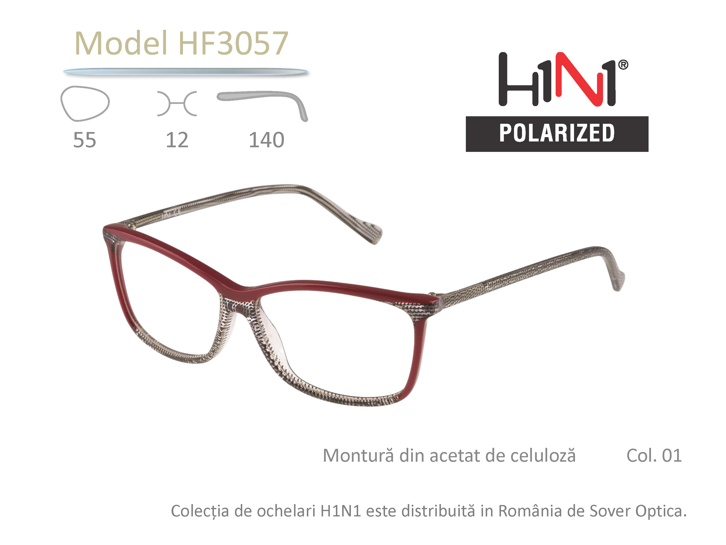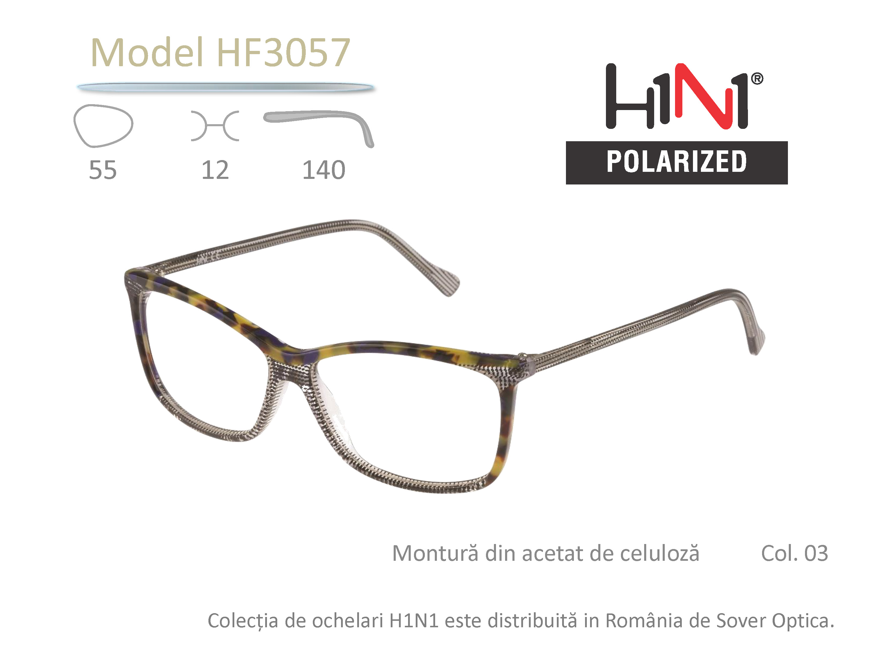 Montura HF 3057 se remarcă prin expresivitatea texturii, precum și prin flexibilitate și ușurință, greutatea fiind simțitor diminuată datorită acetatului de celuloză ultra-subțire.