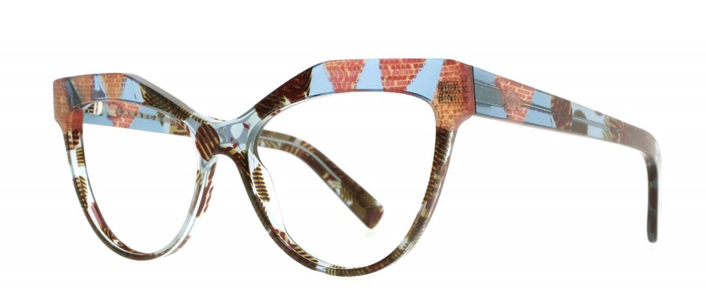 Material: ochelari integral confecționați din acetat de celuloză / efectul Fusioni se reflectă prin variațiile cromatice ale structurii de acetat