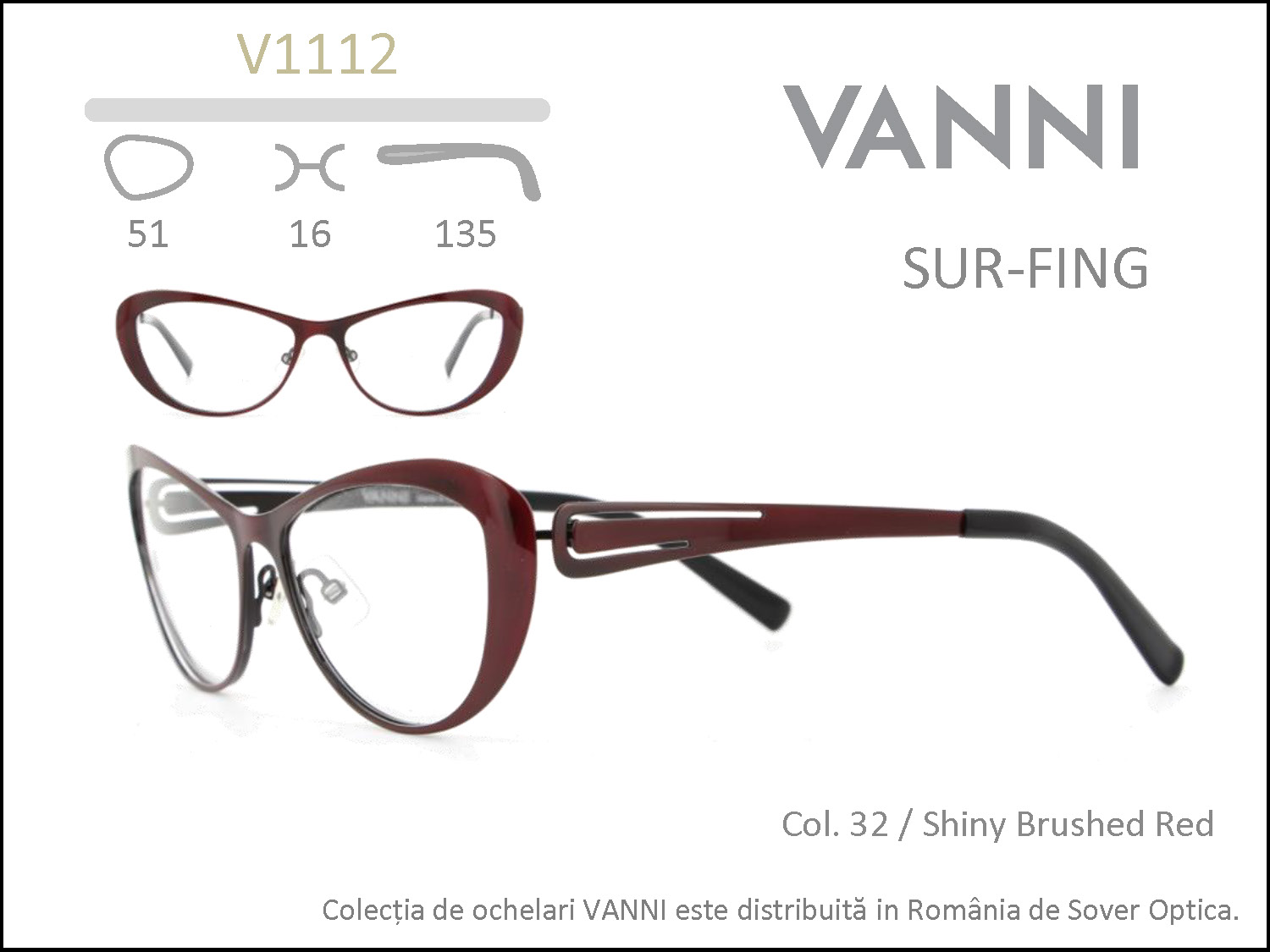 Modelul VANNI V1112 aparține seriei Surf-Ing și este adresat femeilor cu vârste cuprinse între 25 și 50 de ani, purtătoare ce îndrăgesc accesoriile moderne de inspirație vintage. Dacă frontalul cat-eye derivă direct din epoca anilor `50, brațele decupate din monel pun în evidență stăpânirea unor tehnici moderne de procesare pe care Nico-design le-a șlefuit în cei peste 27 de ani de activitate și pe baza cărora a dobândit cele mai importante distincții internaționale din sectorul desigului de ochelari.