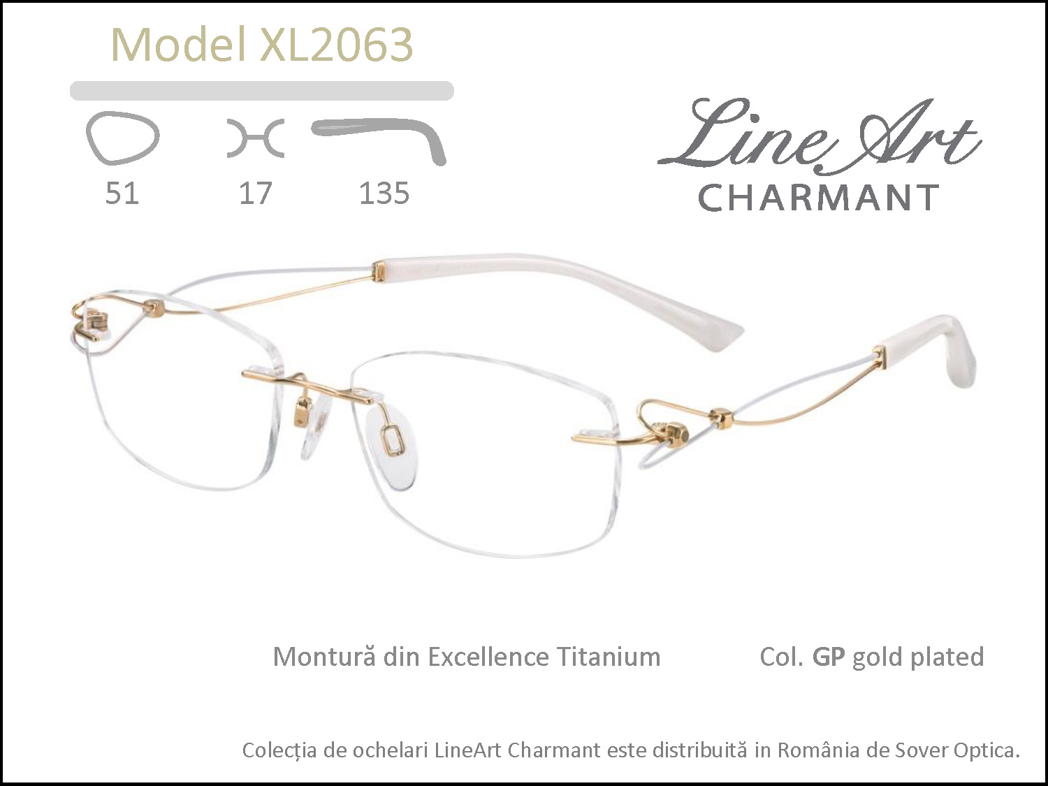 Montură 100% biocompatibilă Colecția LineArt Charmant este recunoscută pentru armonia desăvârșită dintre formă și funcție. Aceste două clasice ingrediente sunt recompuse într-un duet punctat cu accente strălucitoare, montura XL 2063 fiind rodul designului preocupat de o perfectă simbioză între materiale cu proprietăți unice, expresie plastică și beneficii incomparabile. Fabricantul nipon știe că puterea brandului său signature este efectul combinației unor elemente relevante pentru purtătoarele atente deopotrivă la confortul anatomic și estetica monturii. Calitatea peste așteptări asigurată instant și stilul unic al designului atemporal sunt trăsături definitorii pentru orice montură LineArt Charmant.